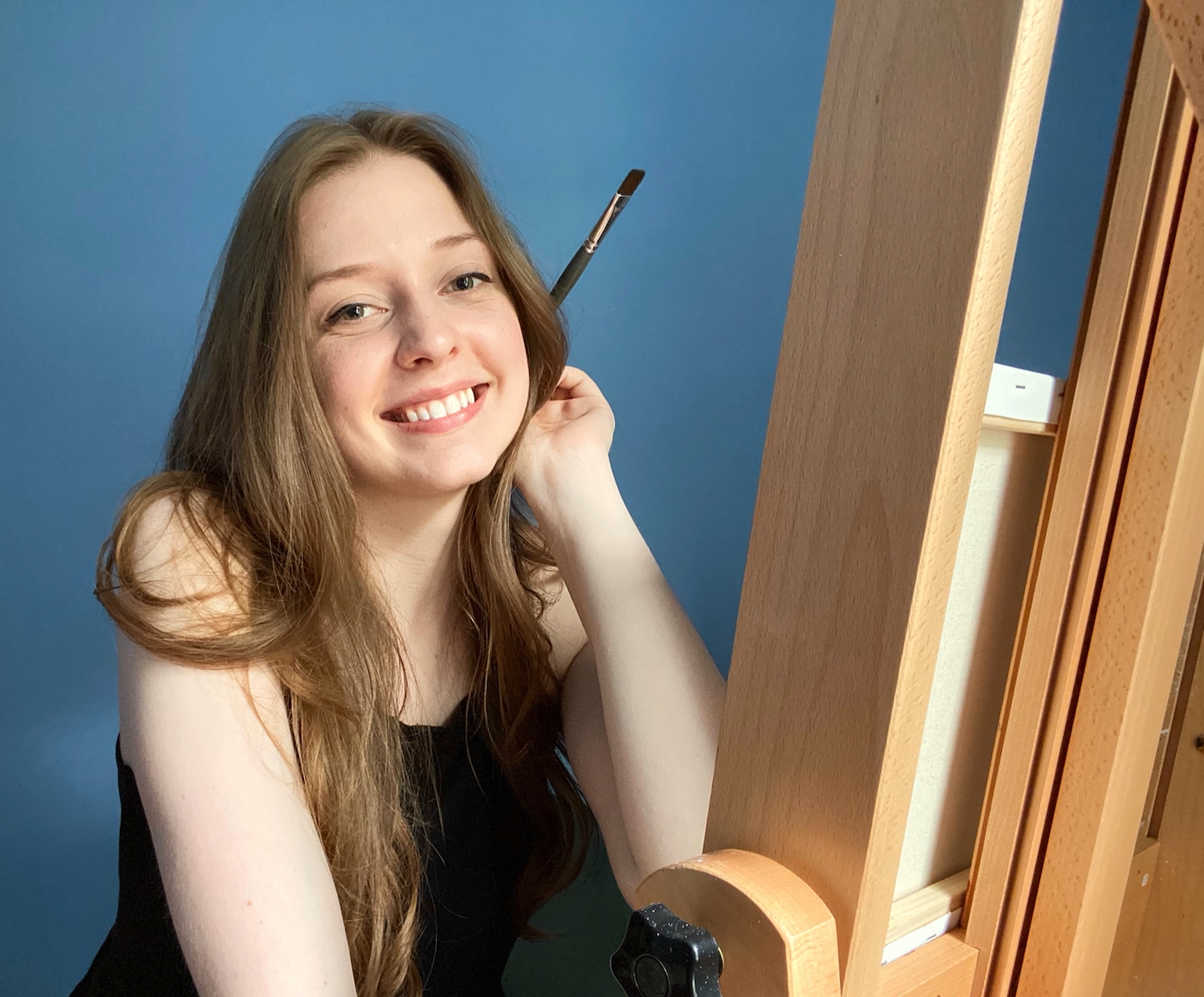 Emily Valentine Hutton (b. 2000) is a self-taught oil and acrylic painter based in Toronto, Canada. Originally studying science at the University of Guelph, she eventually shifted her focus to art and began painting full-time. Since then, Emily has sold original works to collectors worldwide and has earned several international awards for her work. While she has explored a wide range of subjects throughout her career, her recent series focuses on bold, vibrant still lifes. She is currently refining her artistic voice and continuing to experiment within the still life genre.